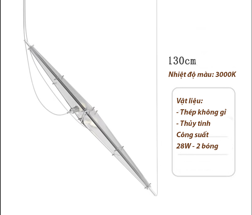 - Chất liệu: Thép không gỉ, phần chao đèn: thủy tinh