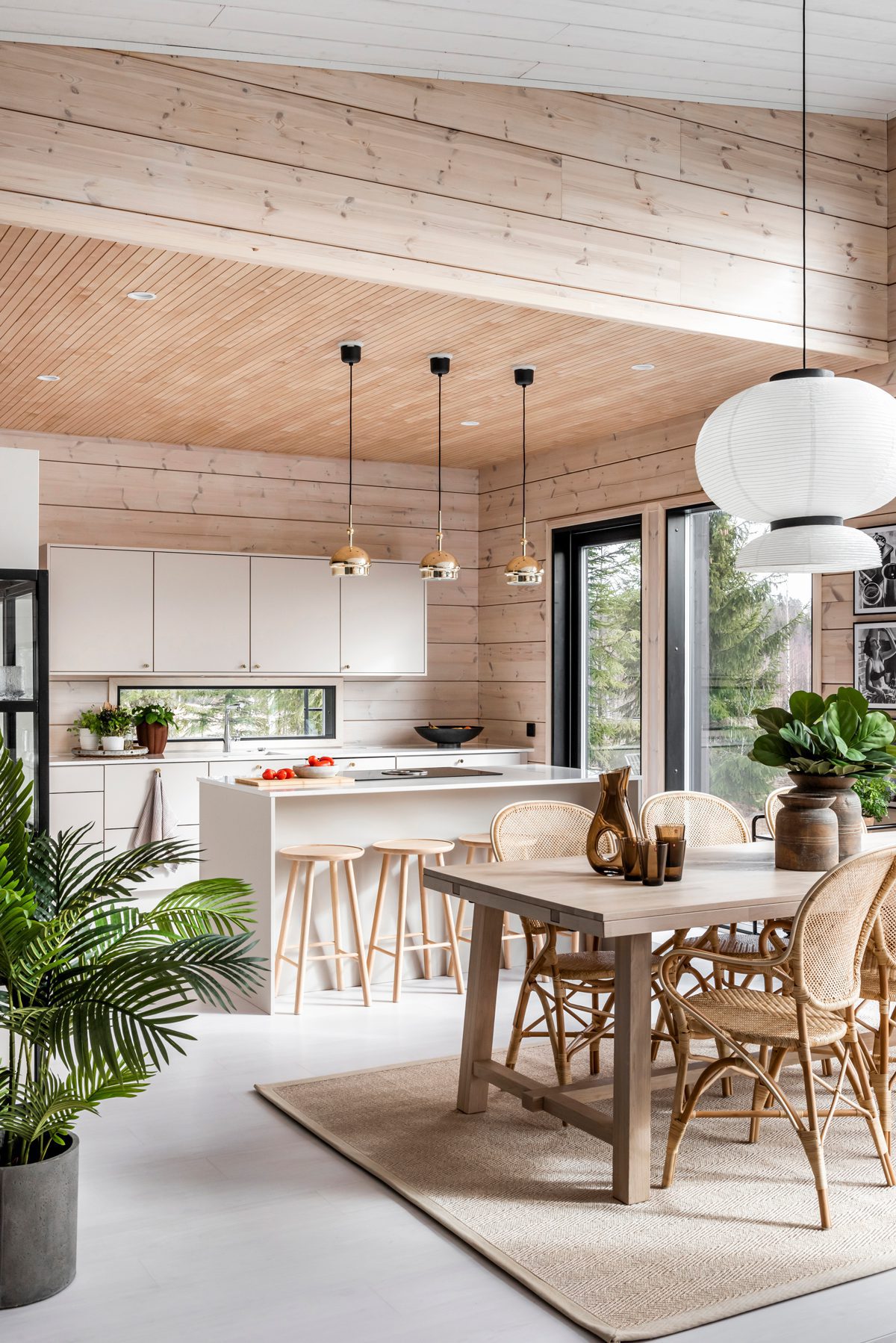 Nhiều người trong chúng ta mơ ước về một ngôi nhà bình dị, được làm bằng gỗ tự nhiên, có bên ngoài mang nét hiện đại và gần gũi. Kiến trúc Scandinavia luôn hướng đến thiên nhiên, ánh sáng tự nhiên, công năng tiện dụng và sự thoải mái. Hiểu được điều này, Honka - một đơn vị thiết kế nội thất tại Phần Lan đã nắm bắt và tạo nên một không gian trong đó, chất liệu gỗ tự nhiên luôn mang lại cảm giác thích thú khi nhìn vào, và một ngôi nhà gỗ đơn giản khiến chúng ta cảm thấy dễ chịu. Những ô cửa sổ toàn cảnh lớn, sự kết hợp của vật liệu, khu vực sinh hoạt rộng rãi cũng như các chi tiết tối giản là điển hình cho diện mạo này.