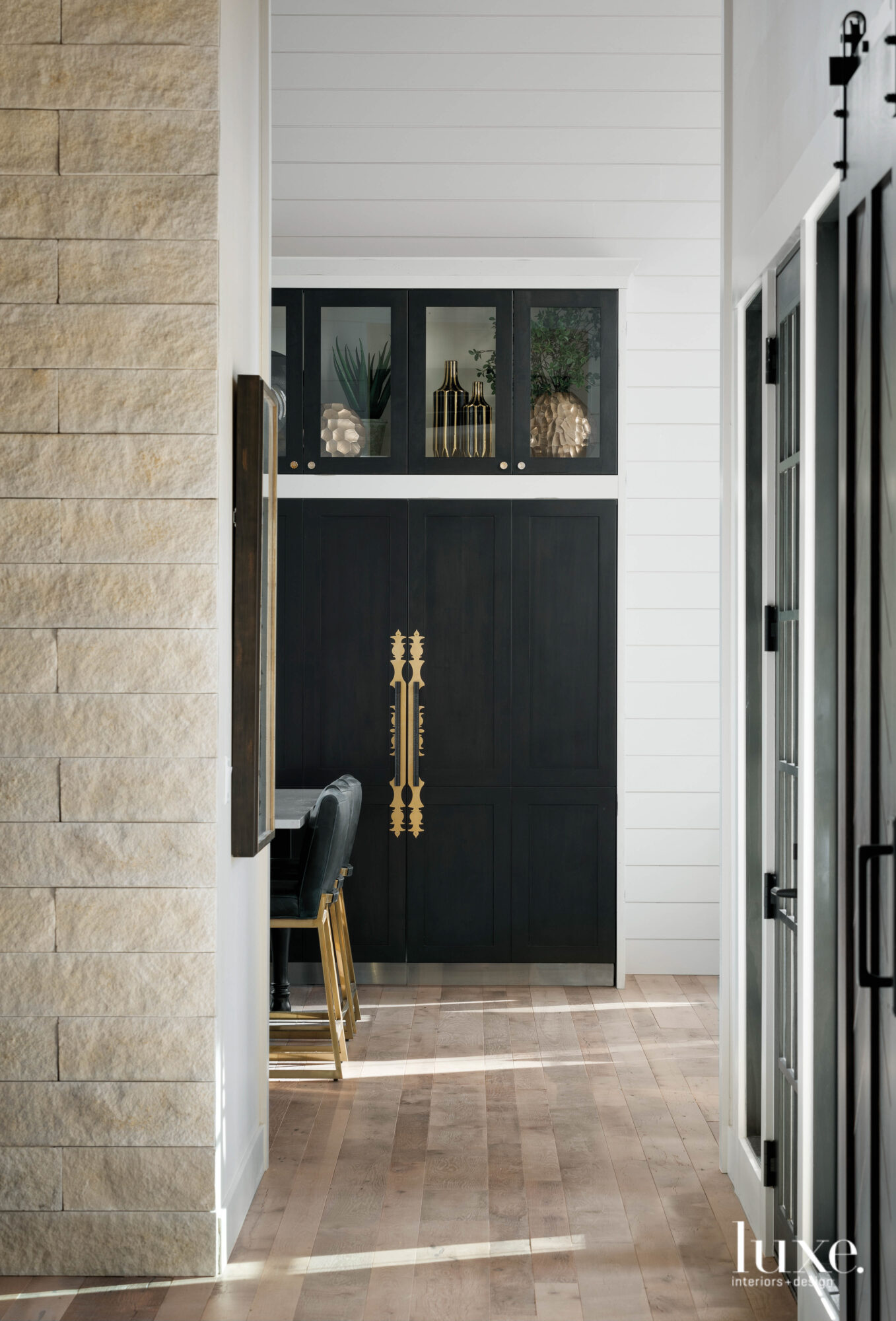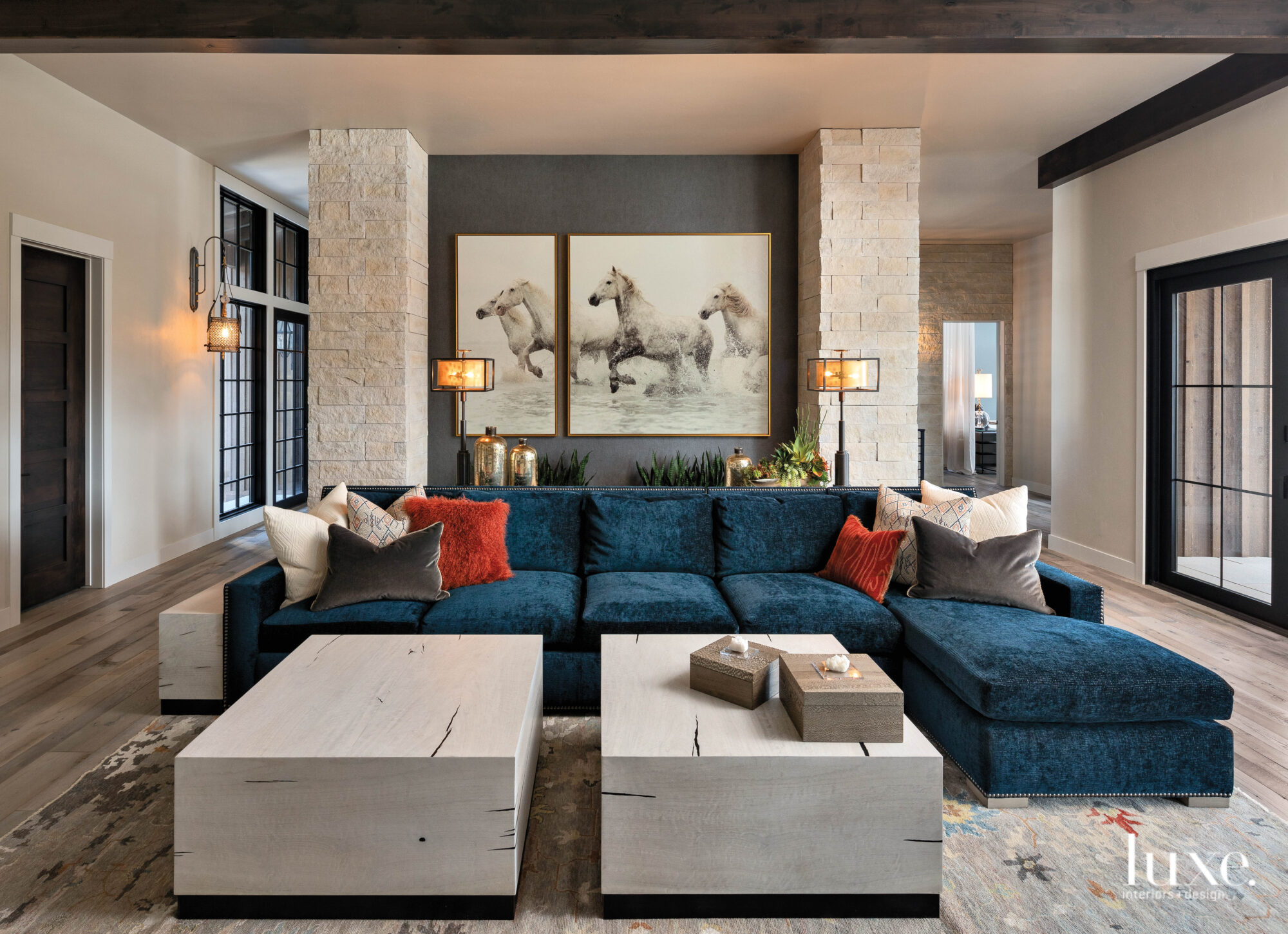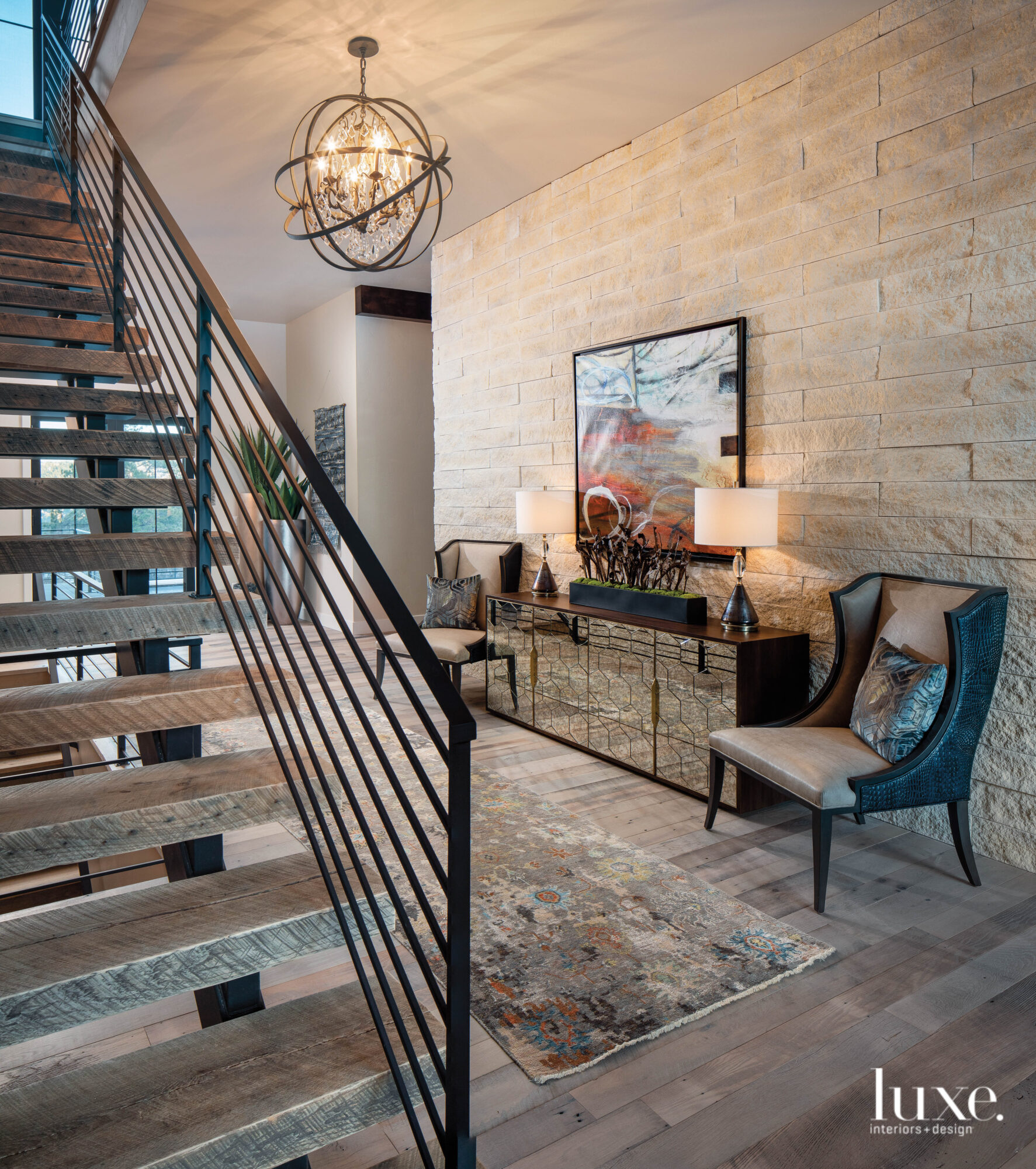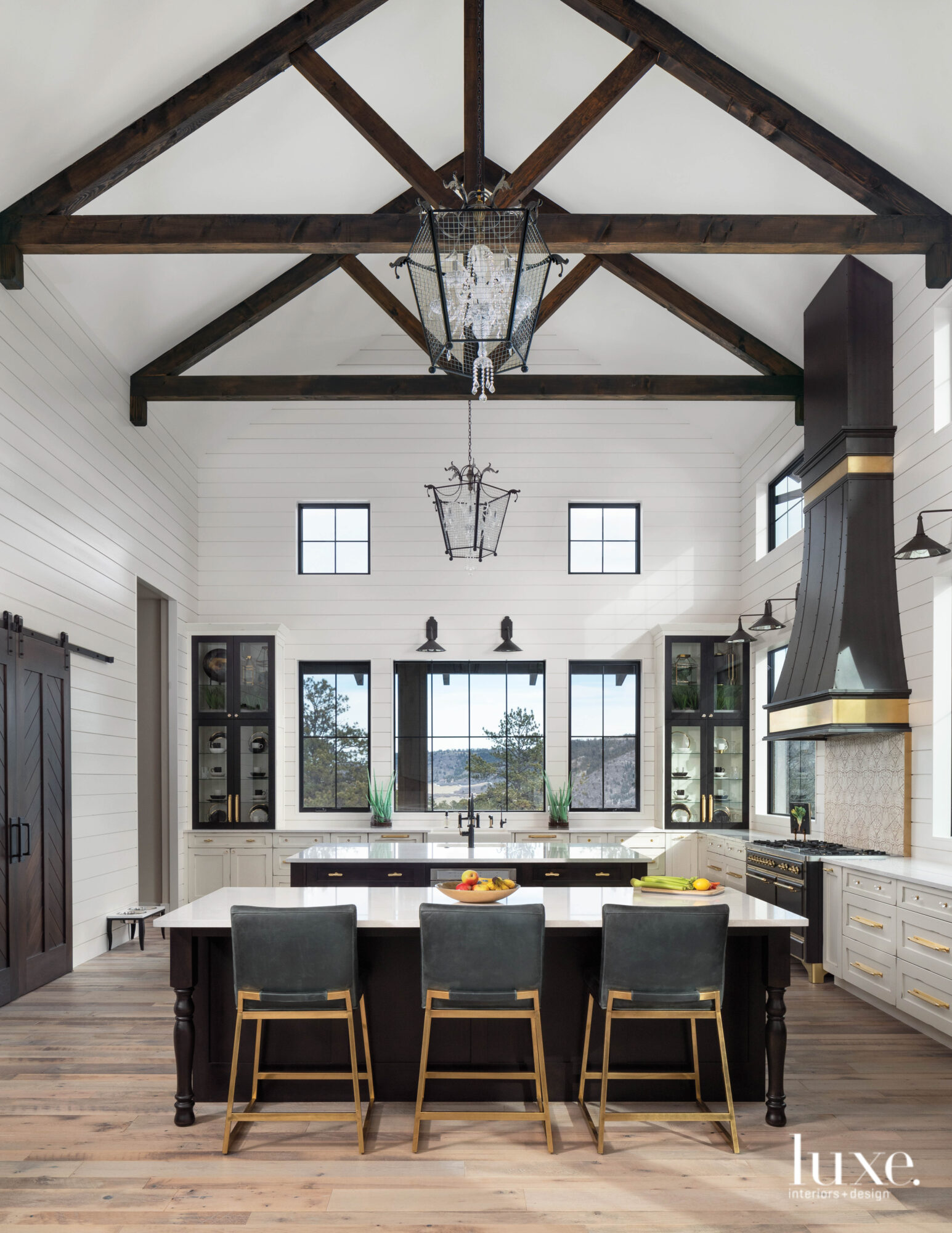 Ẩn mình trong những khu rừng tươi tốt xung quanh Larkspur, Colorado, ngôi nhà của gia đình này trông giống như một bức tranh bình dị của một trang trại sống từ bên ngoài. Nhưng bên trong ngôi nhà mới xây, phong cách nông nghiệp đáp ứng được tính thẩm mỹ tinh tế để mang đến một diện mạo lai mới mẻ. Để tạo ra nó, chủ nhà đã tập hợp một nhóm thiết kế gồm kiến trúc sư Karen Sund, nhà thiết kế Gina D'Amore Bauerle và tổng thầu Kent Lersch. Quá trình này tiếp tục bằng cách kết hợp các chi tiết trang trại mộc mạc với những lớp hoàn thiện bóng bẩy hơn. Những điểm nhấn chắc chắn được tạo ra bởi hệ dầm màu tối trải dài trên trần nhà, cửa trượt và màu sàn gỗ tự nhiên. Kết hợp với lò sưởi ốp đá thạch anh ánh lấp lánh nhẹ tạo điểm nhấn cho cả ngôi nhà.
