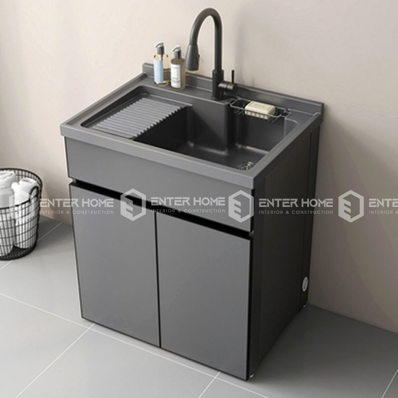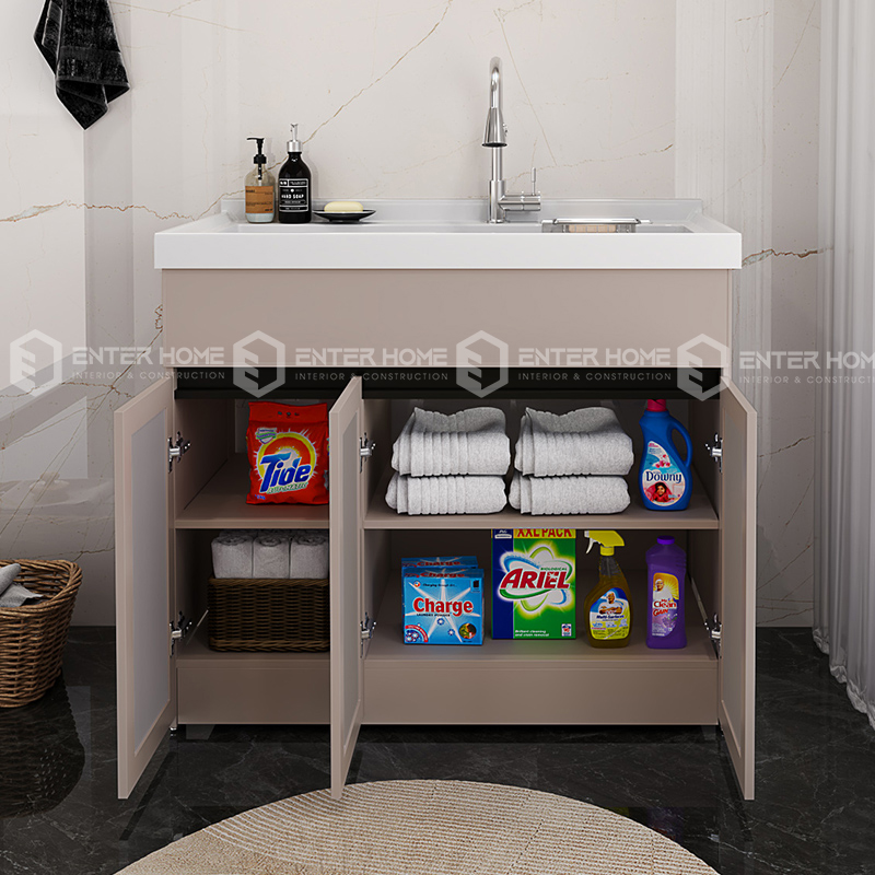 - Mặt bàn chậu giặt: Đá nhân tạo đúc liền khối - Thiết kế chắc chắn, đảm bảo độ cứng, chống bám bẩn, ẩm mốc, dễ vệ sinh;