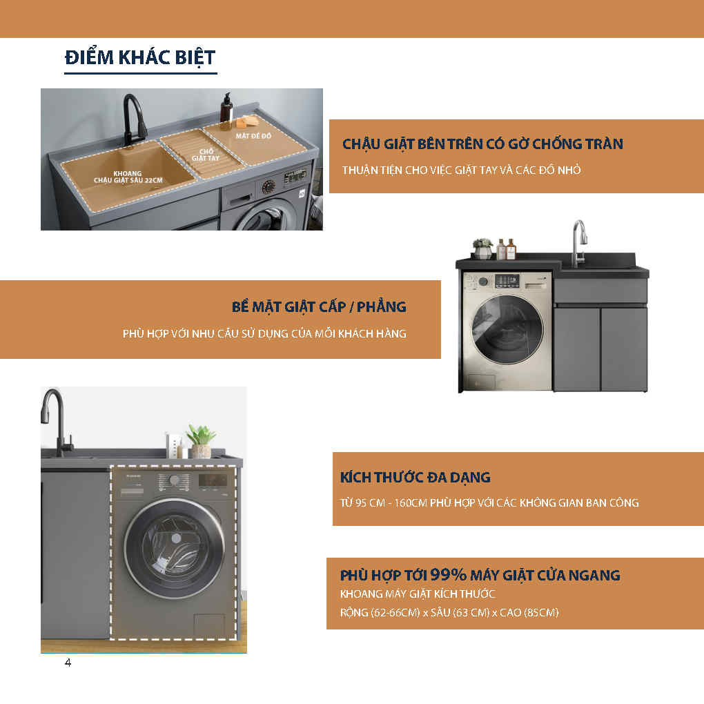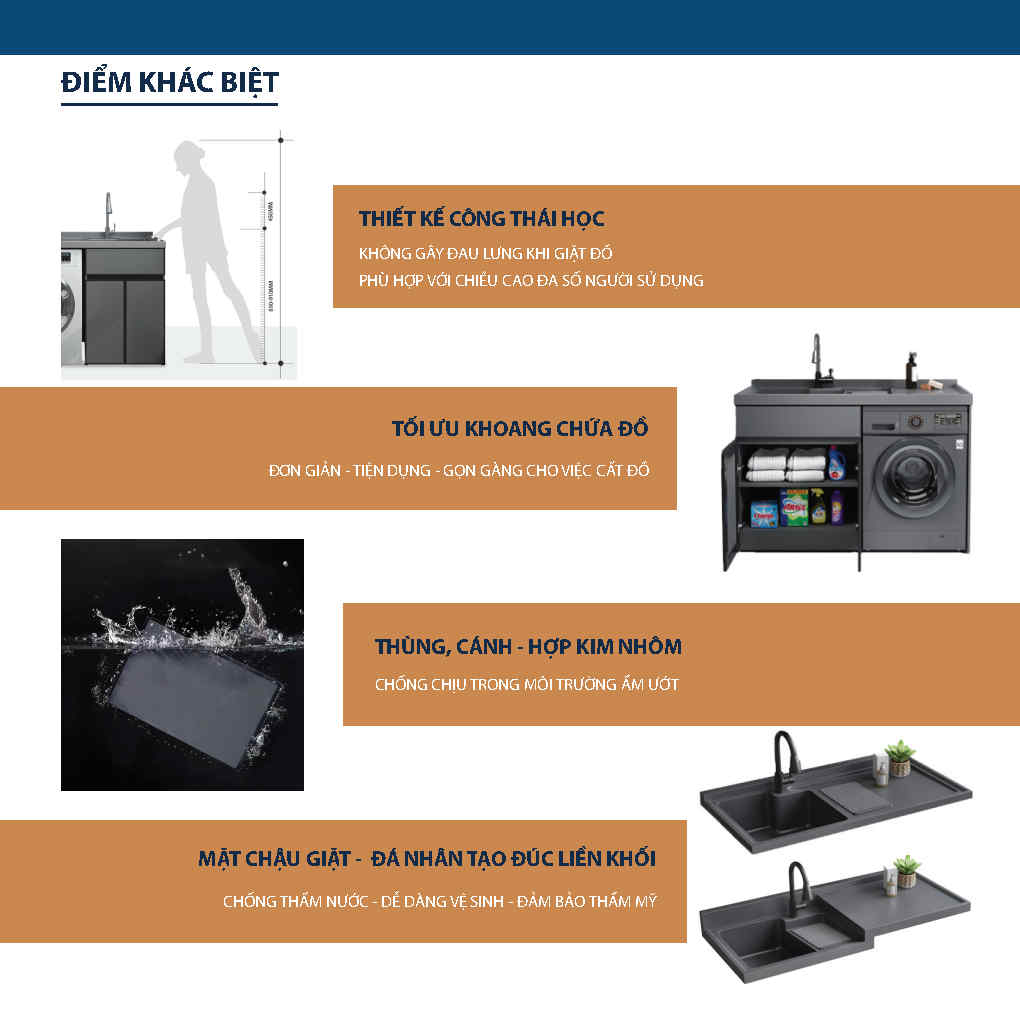 - Bồn giặt phía trên tiện dụng cho việc giặt tay các đồ nhỏ và làm sạch các vị trí cần thiết trước khi cho vào máy giặt.